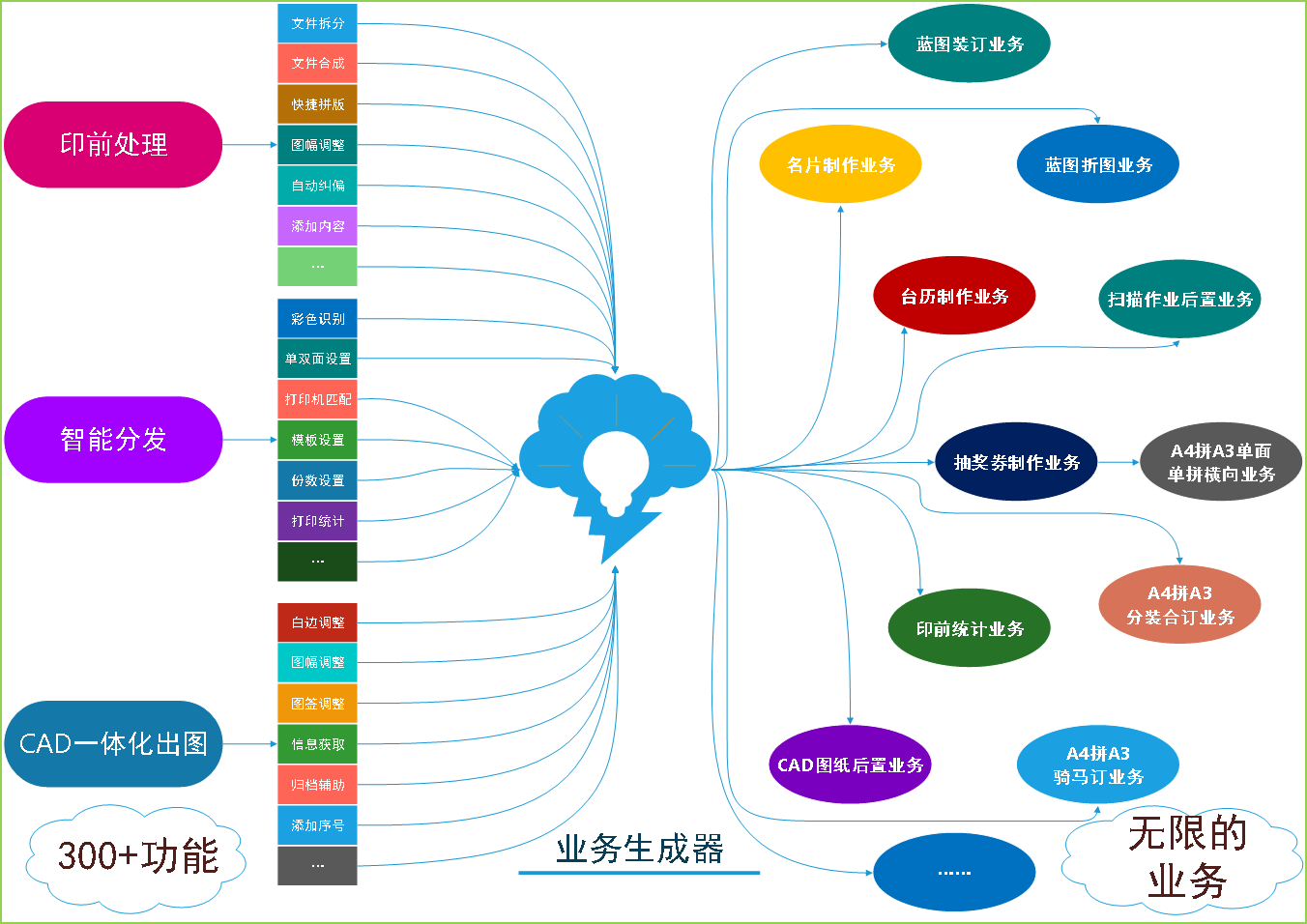 點(diǎn)源快印通軟件主要業(yè)務(wù)功能分為以下三大塊: