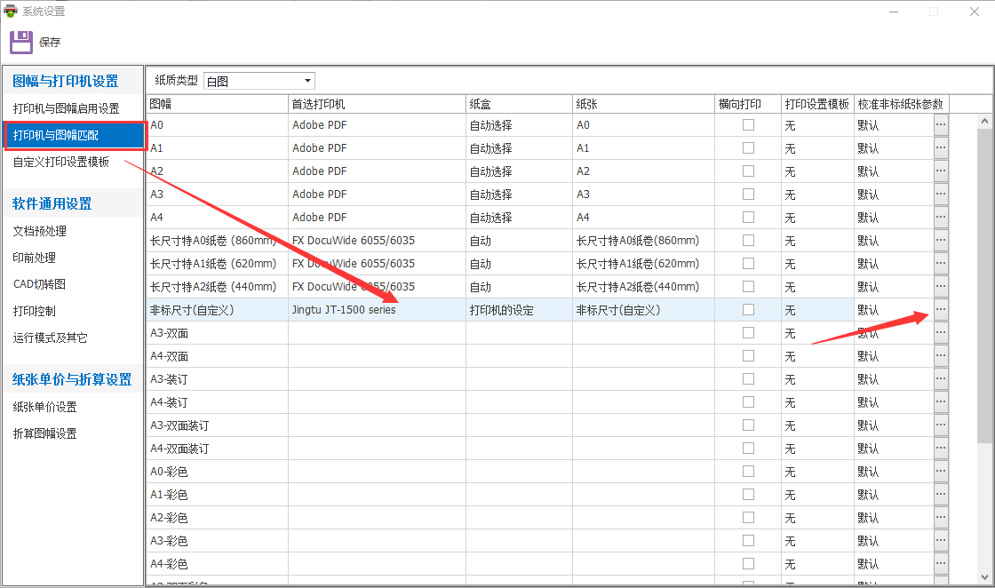 b. 找到非標尺寸(自定義)項,點擊最后的按鈕,彈出打印機設置對話框: