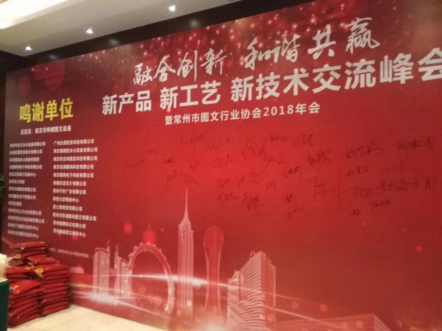 常州市圖文行業(yè)協(xié)會于2018年元月20日下午兩點假座常州都喜天麗富都中航酒店三樓開啟的‘’融合創(chuàng)新和協(xié)共贏‘’暨2018年年會。