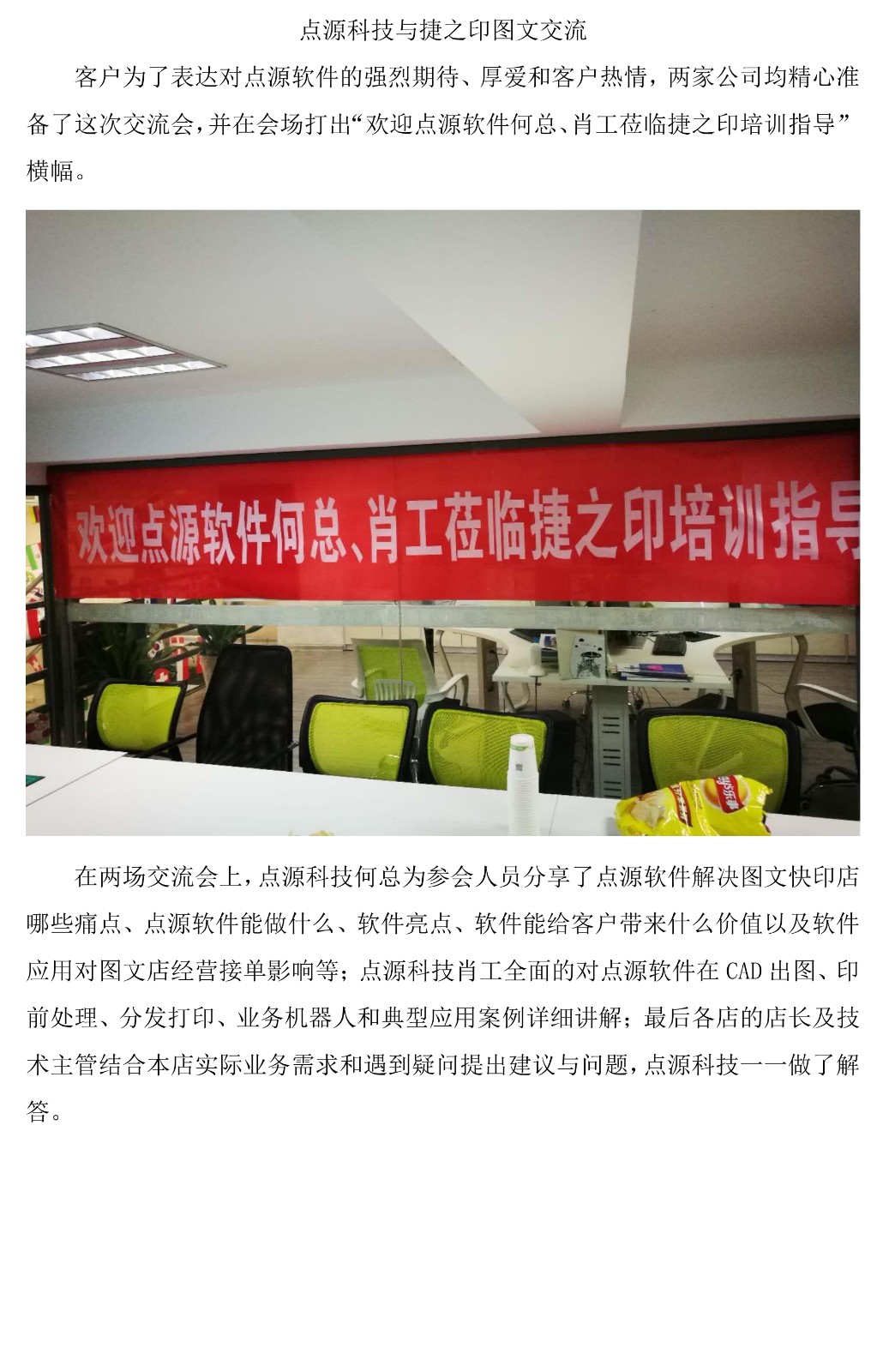 福州客戶拉起橫幅,歡迎點(diǎn)源軟件技術(shù)交流