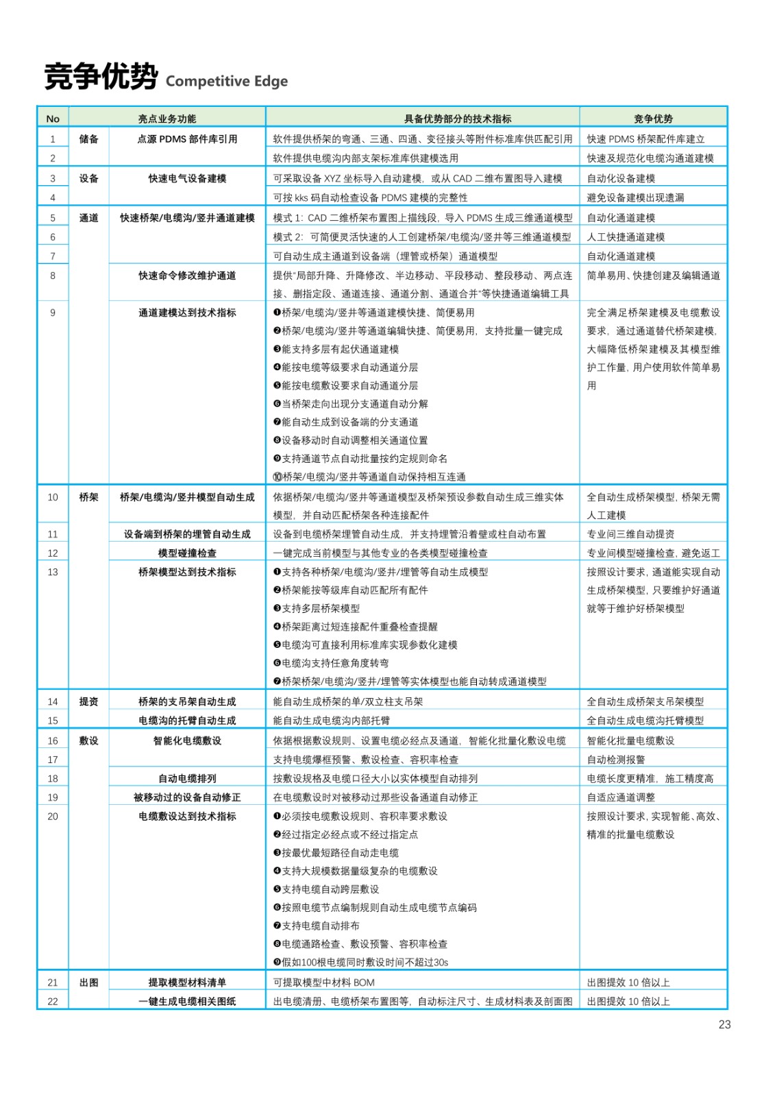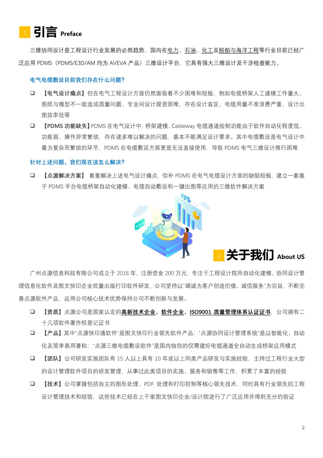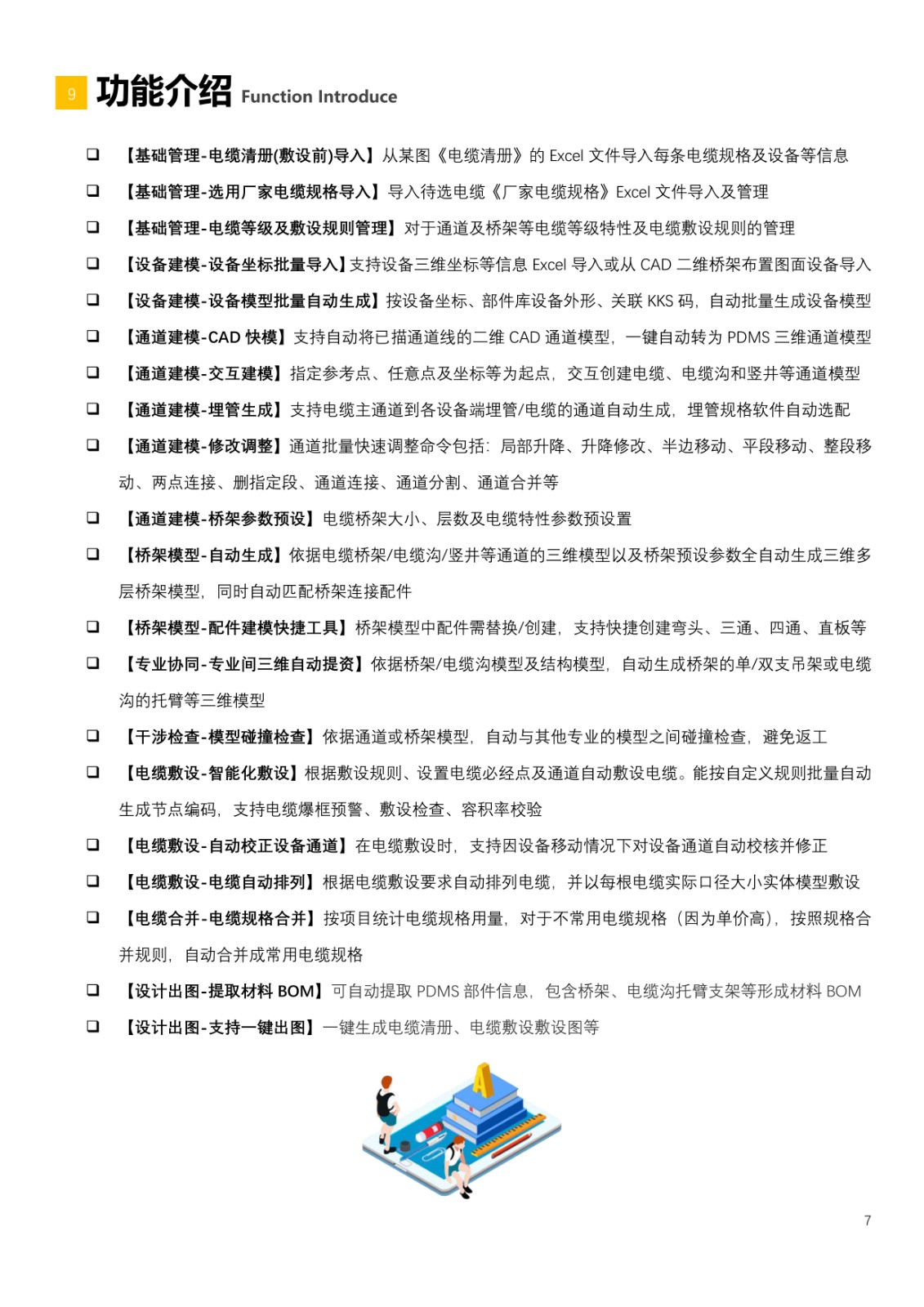 基于AVEVA公司PDMS/E3D,點源插件可實現(xiàn):【通道翻?!緼utoCAD橋架翻模成PDMS/E3D三維通道模型,【通道修改】各通道快捷命令批量快捷修改通道;【橋架生成】按通道全自動生成電纜橋架/電纜溝/豎井/埋管等三維模型;【支吊架生成】全自動生成支吊架;【設(shè)備建?!侩姎庠O(shè)備批量建模;【電纜敷設(shè)】智能批量電纜敷設(shè),并生成訂貨清冊;【提資】專業(yè)間提資更便利;【設(shè)計出圖】只要建有模型,就能快速出圖